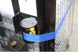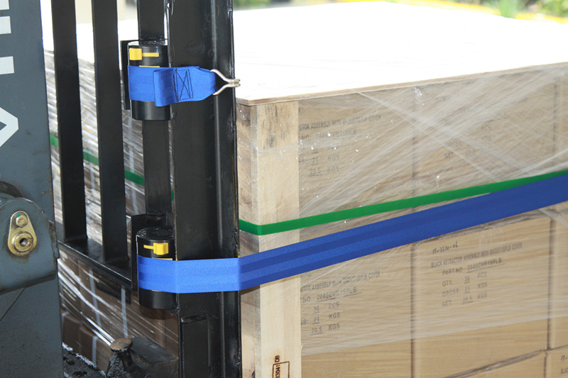 ● The binding strap is installed on the right side of the forklift guard rail frame (the right-hand side of the forklift driver).